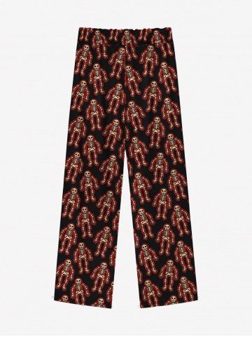 Bottoms > Gothic Skeleton Gingerbread Print Christmas Drawstring Wide Leg Sweatpants For Men
