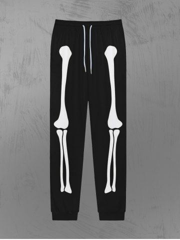 Gothic Skeleton Print Halloween Drawstring Pockets Sweatpants For Men - Black - S