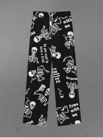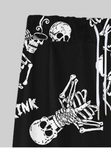 Gothic Skull Skeleton Drink Print Wide Leg Drawstring Sweatpants For Men - Black - Xl