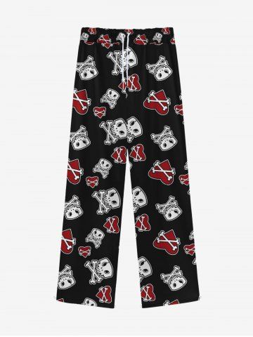 Bottoms > Gothic Skull Skeleton Heart Print Drawstring Wide Leg Sweatpants For Men