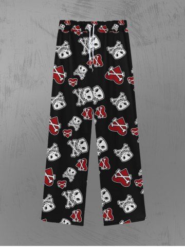 Bottoms > Gothic Skull Skeleton Heart Print Drawstring Wide Leg Sweatpants For Men