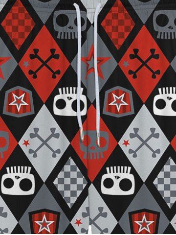 Gothic Skull Star Bone Geometric Plaid Colorblock Print Drawstring Pockets Sweatpants For Men - Multi-a - 4xl