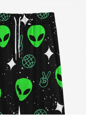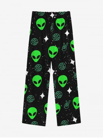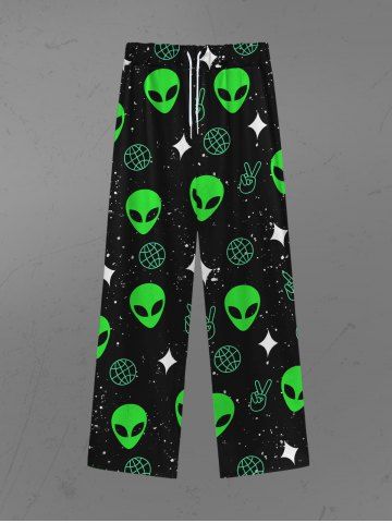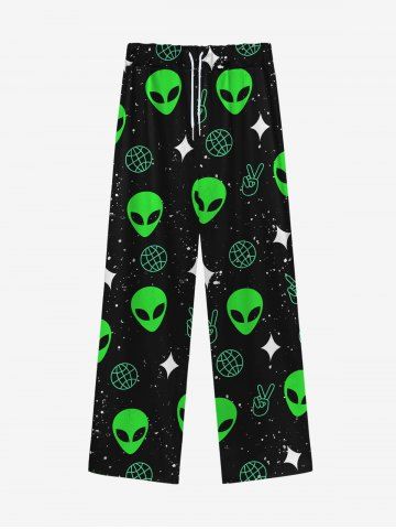 Bottoms > Gothic Skulls Alien Star Planet Print Drawstring Wide Leg Sweatpants For Men