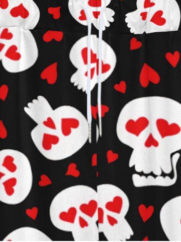 Gothic Skulls Heart Print Valentines Drawstring Wide Leg Sweatpants For Men - Black - L
