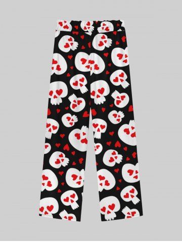 Bottoms > Gothic Skulls Heart Print Valentines Drawstring Wide Leg Sweatpants For Men