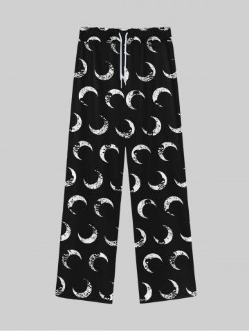 Bottoms > Gothic Skulls Moon Print Wide Leg Drawstring Sweatpants For Men