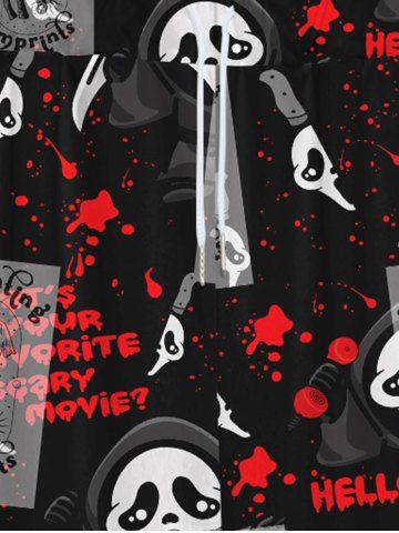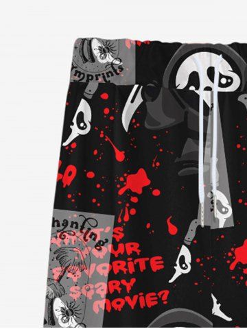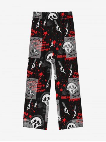 Gothic Skulls Paint Spaltter Sun Moon Print Wide Leg Drawstring Sweatpants For Men - Black - Xl