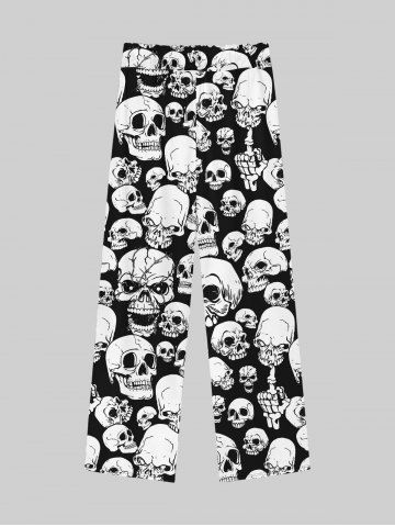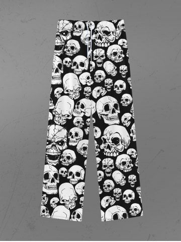 Gothic Skulls Print Drawstring Wide Leg Sweatpants For Men - Black - L