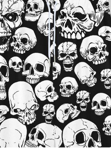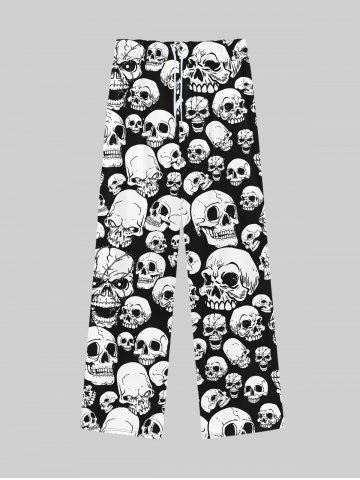 Gothic Skulls Print Drawstring Wide Leg Sweatpants For Men - Black - 2xl