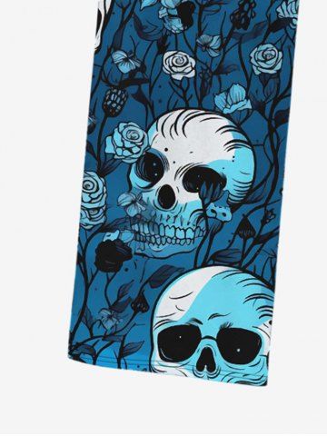 Gothic Skulls Rose Flower Leaf Colorblock Print Drawstring Wide Leg Sweatpants For Men - Blue - Xl