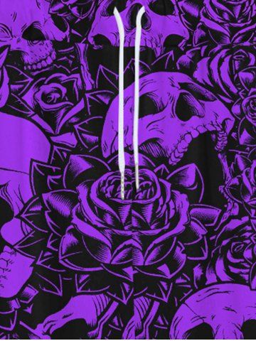 Gothic Skulls Rose Flower Print Valentines Drawstring Wide Leg Sweatpants For Men - Purple - 7xl