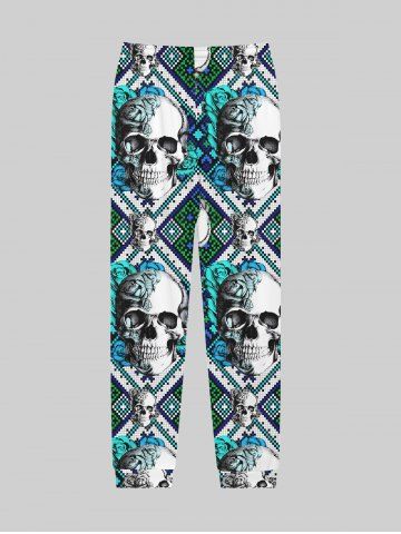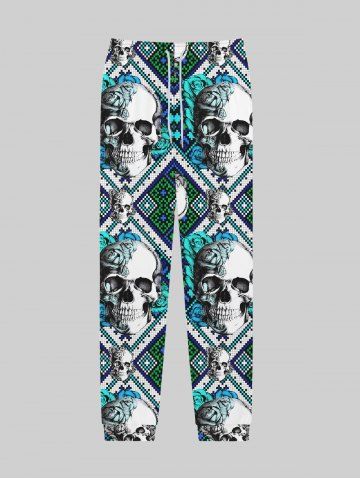 Bottoms > Gothic Skulls Rose Flowers Cross Stitch 3D Print Drawstring Jogger Pants For Men