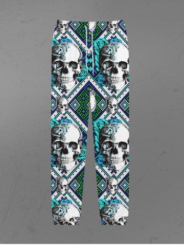 Gothic Skulls Rose Flowers Cross Stitch 3D Print Drawstring Jogger Pants For Men - Multi-a - 2xl