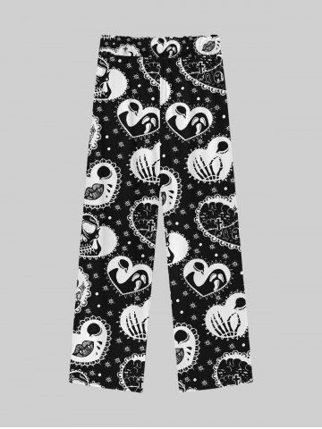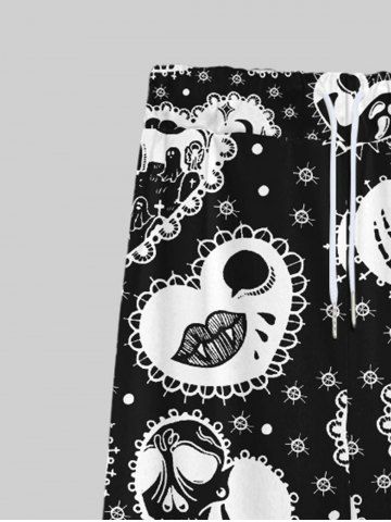 Gothic Skulls Skeleton Heart Cross Tombstone Moon Lip Print Drawstring Valentines Wide Leg Sweatpants For Men - Black - 3xl