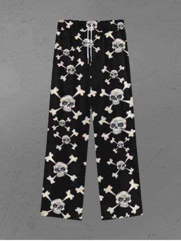 Gothic Skulls Skeleton Print Wide Leg Drawstring Sweatpants For Men - Black - 4xl