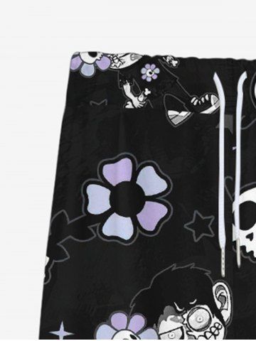 Gothic Skulls Star Sunflower Cartoon Boy Print Drawstring Wide Leg Sweatpants For Men - Black - Xl