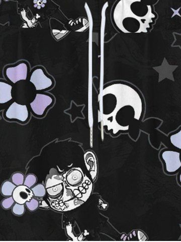 Gothic Skulls Star Sunflower Cartoon Boy Print Drawstring Wide Leg Sweatpants For Men - Black - 3xl