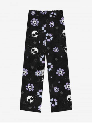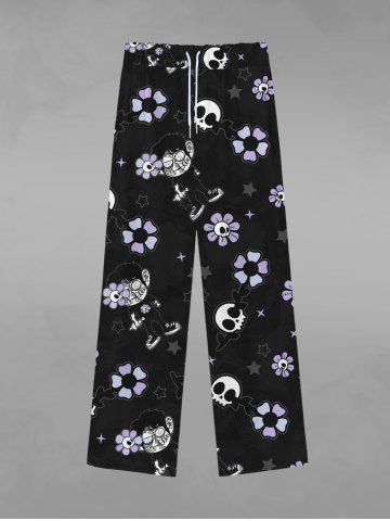 Gothic Skulls Star Sunflower Cartoon Boy Print Drawstring Wide Leg Sweatpants For Men - Black - 4xl