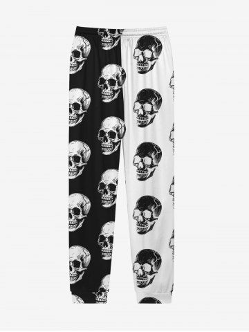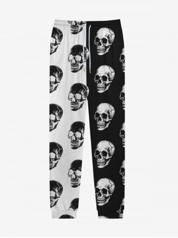 Bottoms > Gothic Skulls Two Tone Colorblock Print Drawstring Jogger Pants For Men