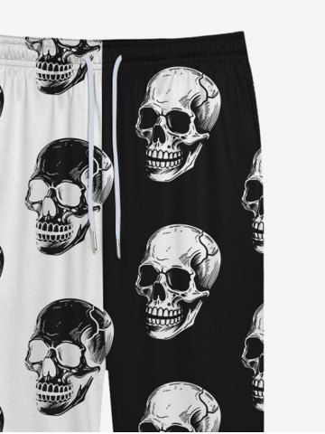 Bottoms > Gothic Skulls Two Tone Colorblock Print Drawstring Jogger Pants For Men