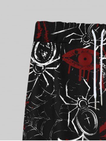 Bottoms > Gothic Spider Web Bloody Eye Print Drawstring Wide Leg Sweatpants For Men