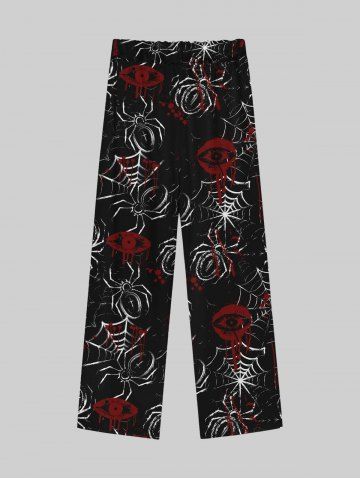 Bottoms > Gothic Spider Web Bloody Eye Print Drawstring Wide Leg Sweatpants For Men