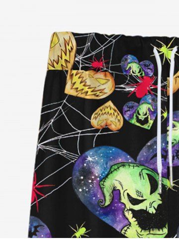 Gothic Spider Web Devil Heart Galaxy Bat Print Valentines Drawstring Wide Leg Sweatpants For Men - Black - 6xl