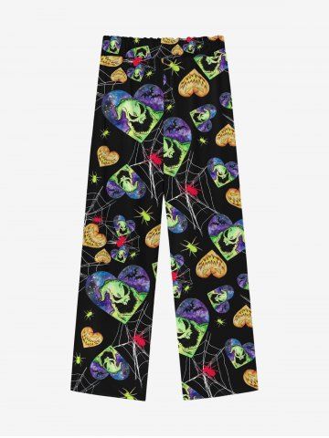 Gothic Spider Web Devil Heart Galaxy Bat Print Valentines Drawstring Wide Leg Sweatpants For Men - Black - 8xl
