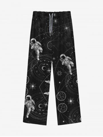 Bottoms > Gothic Stars Planet Eye Galaxy Astronaut Print Drawstring Wide Leg Sweatpants For Men