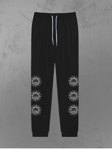 Gothic Sun Print Pockets Drawstring Sweatpants For Men - Black - Xl