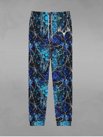 Gothic Tree Branch Colorblock Elk Print Christmas Drawstring Pocket Sweatpants For Men - Blue - 2xl