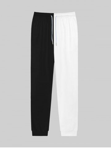 Gothic Two Tone Patchwork Pockets Drawstring Pull On Sweatpants For Men - Black - L