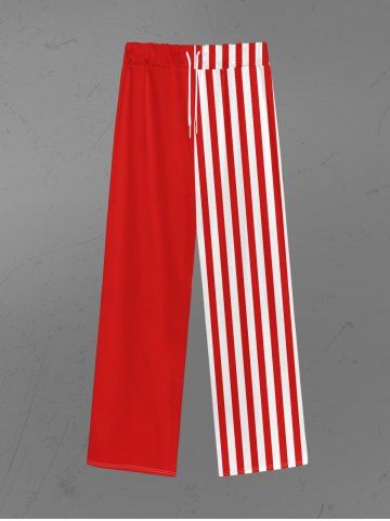 Gothic Two Tone Stripe Print Wide Leg Drawstring Sweatpants For Men - Red - 4xl