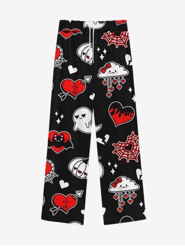 Gothic Valentine's Day Arrow Heart Spider Web Cloud Pumpkin Print Wide Leg Drawstring Sweatpants For Men - Black - 2xl