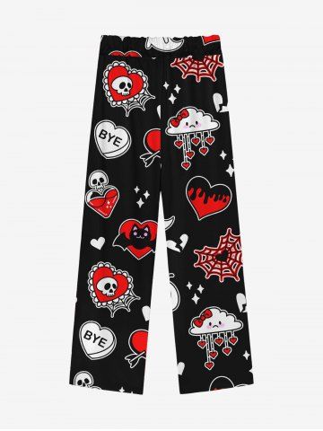 Gothic Valentine's Day Arrow Heart Spider Web Cloud Pumpkin Print Wide Leg Drawstring Sweatpants For Men - Black - 3xl