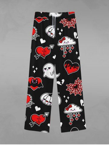 Gothic Valentine's Day Arrow Heart Spider Web Cloud Pumpkin Print Wide Leg Drawstring Sweatpants For Men - Black - 8xl