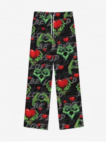 Gothic Valentine's Day Heart Claw Print Wide Leg Drawstring Sweatpants For Men - Black - L