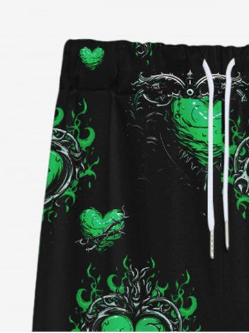 Bottoms > Gothic Valentine's Day Heart Plant Print Wide Leg Drawstring Sweatpants For Men