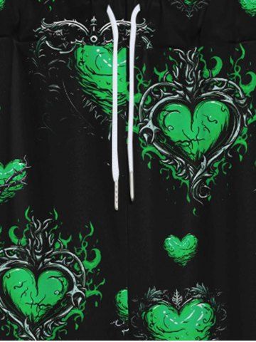 Gothic Valentine's Day Heart Plant Print Wide Leg Drawstring Sweatpants For Men - Black - 3xl