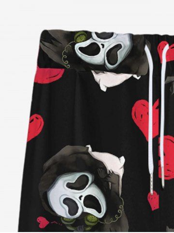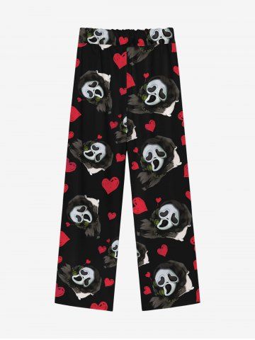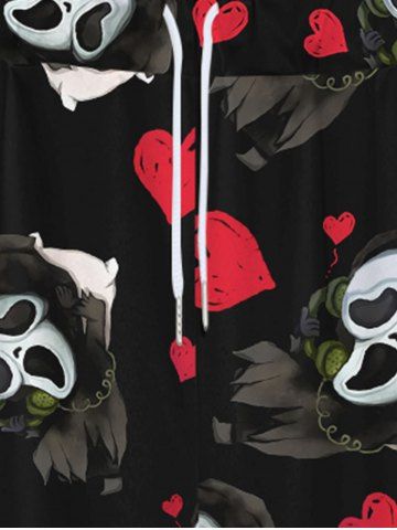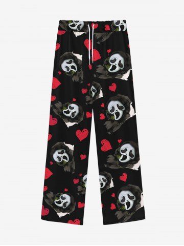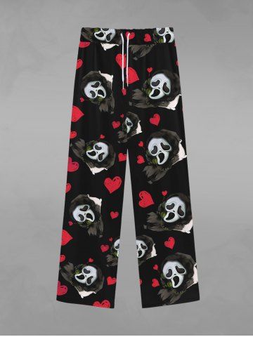 Gothic Valentine's Day Skull Ghost Heart Print Wide Leg Drawstring Sweatpants For Men - Black - Xl