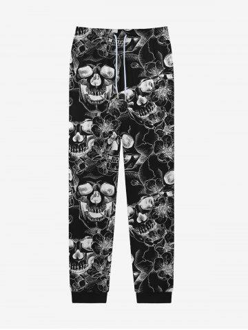Gothic X-rays Skulls Flowers Print Drawstring Jogger Sweatpants For Men - Black - L