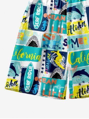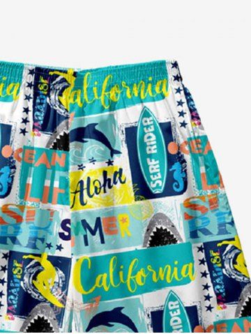 Kid's Dolphin Letters Stars Geometric Colorblock Print Hawaii Board Shorts - Multi-a - 140