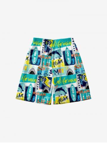 Bottoms > Kid's Dolphin Letters Stars Geometric Colorblock Print Hawaii Board Shorts