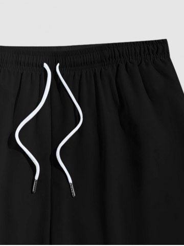 Men's Cat Japanese Characters Print Pockets Beach Shorts - Black - 6xl