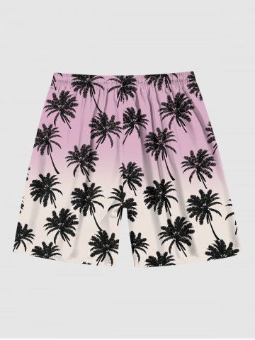 Hawaii Men's Coconut Tree Print Ombre Drawstring Shorts - Multi-a - 4xl