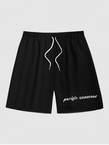 Men's Solid Color 1980 Print Beach Shorts - Black - 2xl