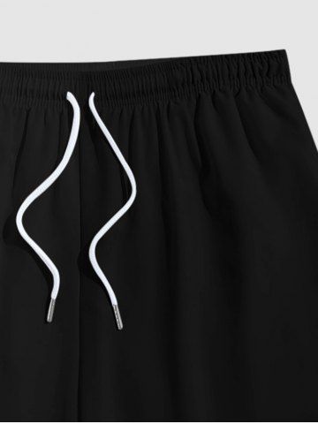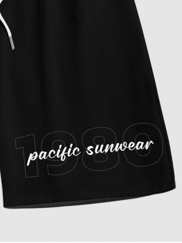 Men's Solid Color 1980 Print Beach Shorts - Black - 6xl