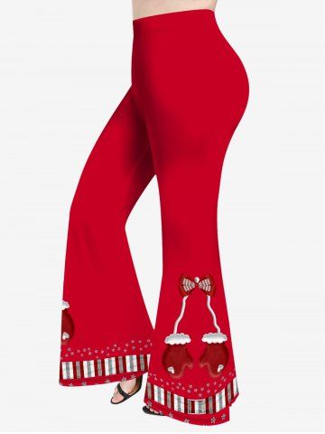 Plus Size Bowknot Christmas Gloves Striped Stars Print Flare Pants - Red - 2x