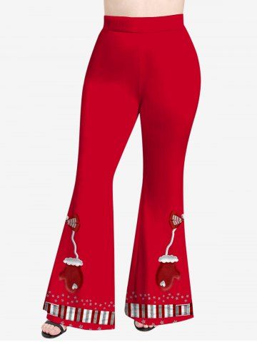 Bottoms > Plus Size Bowknot Christmas Gloves Striped Stars Print Flare Pants