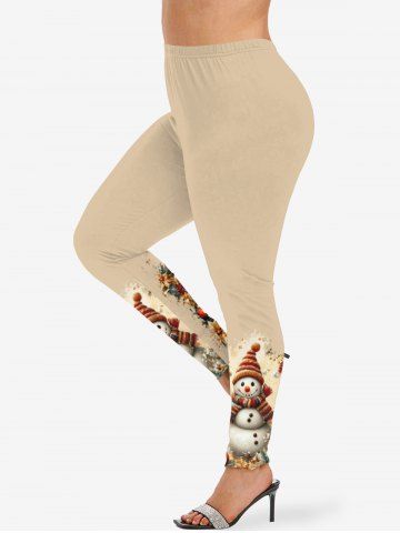 Plus Size Christmas Ball Flowers Snowman Print Leggings - Apricot - L